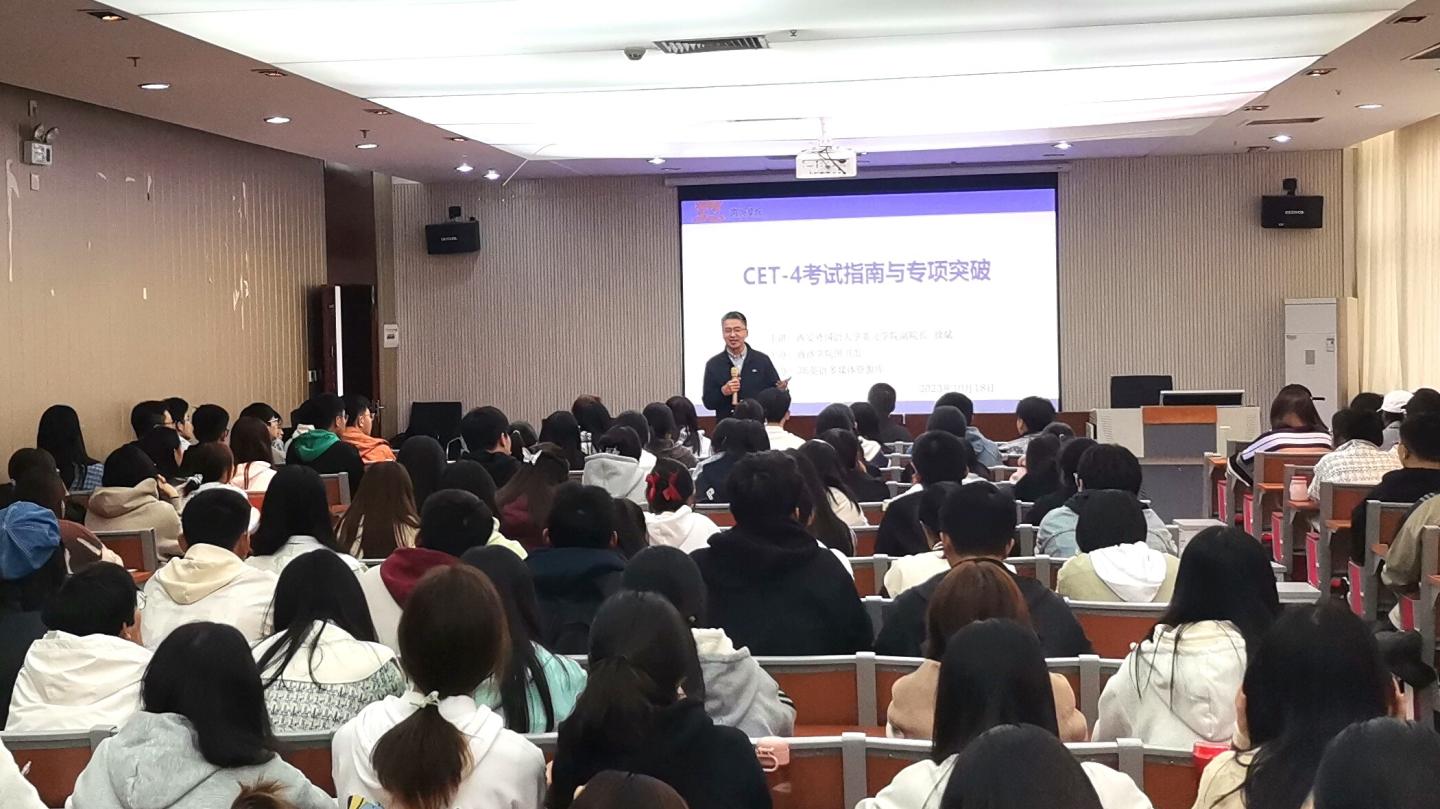 為深化學生對大學英語四級考試認識,提高備考策略與方法,樹立考試信心,10月18日下午,圖書館在丹江校區舉辦“CET-4考試指南與專項突破”專題講座。講座邀請西安外國語大學英文學院副院長徐斌作為主講。各二級學院備考學生近200人參加講座。