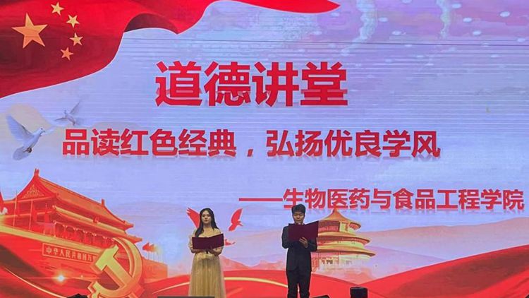 為教育引導青年學子賡續紅色基因、傳承紅色精神,營造良好學風,11月15日,生物醫藥與食品工程學院以“品讀紅色經典,弘揚優良學風”為主題舉辦道德講堂。校黨委宣傳部副部長王霄飛,生物學院黨、政負責人,黨員和教師代表及2023級全體學生參加了活動。