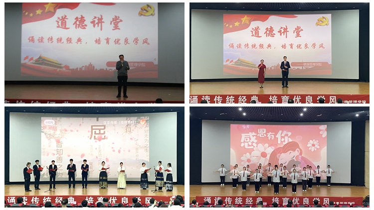 為傳承和弘揚(yáng)中華優(yōu)秀傳統(tǒng)文化,鞏固學(xué)院精神文明和校園文化建設(shè)成果,12月14日,健康管理學(xué)院舉辦“誦讀傳統(tǒng)經(jīng)典 培育優(yōu)良學(xué)風(fēng)”道德講堂活動。校黨委宣傳部副部長史潔,健康學(xué)院院長郭耀東,學(xué)院黨委副書記·副院長楊憲華出席活動。學(xué)院全體教師及2023級全體學(xué)生參加活動。
