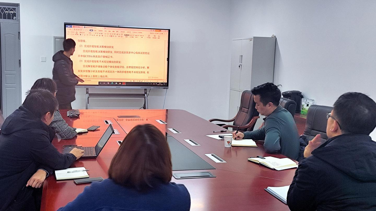 近日,電信學院在丹江校區召開秦創原引用高層次創新創業人才項目校企合作推進會。西安智診智能科技有限公司總經理王博,電信學院院長袁訓鋒、副院長李亞文,秦創原引用高層次創新創業人才項目《基于深度三維重建的肝癌智能決策與手術規劃系統研發》負責人江維博士及相關教師參加會議。會議由袁訓鋒主持。