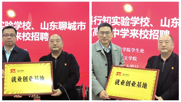 會上,杜明生代表人文學院與湖北房縣行知實驗學校、聊城市匯文高級中學分別簽訂了就業創業基地協議并進行了授牌。