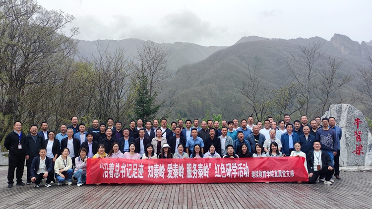 為鞏固拓展主題教育成果,重溫習近平總書記來陜考察重要講話重要指示精神,4月20日,繼續教育學院直屬黨支部組織全體黨員和我校承辦的商洛市第三期小學校長任職資格培訓學員,前往秦嶺牛背梁紅色教育基地和金米村現代農業園區,開展“沿著總書記足跡 知秦嶺 愛秦嶺 服務秦嶺”紅色研學活動。