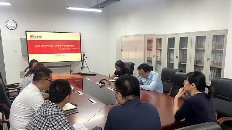 5月20日下午,電信學院在丹江校區召開2023-2024學年第二學期中外共課研討會。電信學院院長袁訓鋒,副院長李亞文,外事秘書劉雅雯,外籍教師Shehab Salem以及全體共課教師參加會議。會議由電氣系主任張商州主持。