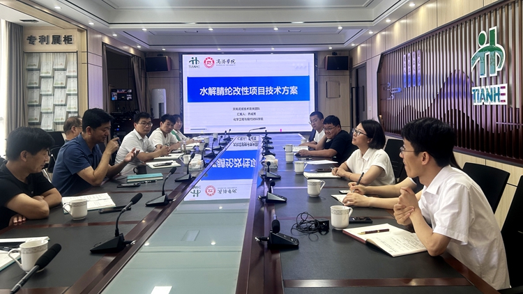 博士服務團隊成員龔偉副教授以“水解腈綸的前世今生”為主題,從腈綸的定義、腈綸的來源、腈綸的水解方式等方面為企業的生產技術團隊做了科普報告。喬成芳教授從聚丙烯腈水解產物分析檢測、水解聚丙烯腈銨鹽類產品工藝的優化,水解聚丙烯腈的高質利用等方面做了技術報告。