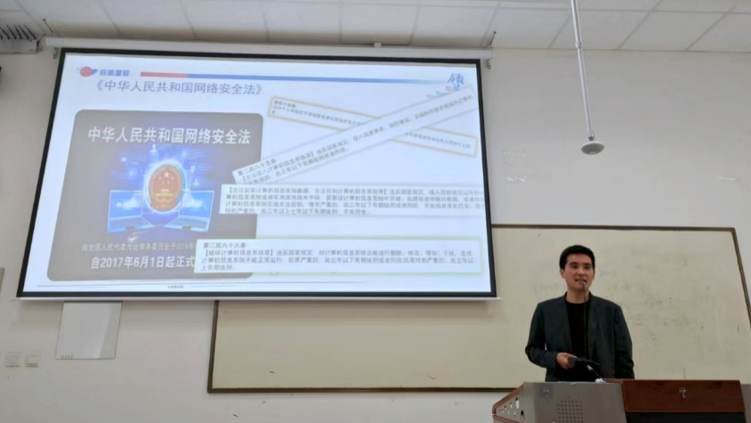 講座共分為“網絡安全熱點事件”“信息安全與國家戰略”“中華人民共和國網絡安全法”“信息安全等級保護測評”“啟明星辰核心業務”“網絡安全人才現狀”六個部分內容。孫明從近期發生的幾起重大隱私泄露事件,包括數據泄露、個人信息被非法買賣等熱點新聞著手,使在場師生意識到網絡安全問題的普遍性、嚴重性、緊迫性。同時,他對《中華人民共和國網絡安全法》進行了深入解讀,詳細介紹了法律的主要條款、立法目的和實施意義。最后,孫明分析了當前網絡安全人才的市場需求、培養現狀及發展趨勢。他指出,隨著網絡技術的快速發展,網絡安全人才短缺的問題日益凸顯。他鼓勵在座的學生們積極投身網絡安全領域,提升自身技能,為國家的網絡安全事業貢獻力量。同時,他還分享了啟明星辰在人才培養和職業發展方面的舉措,為學生們指明了前進方向。