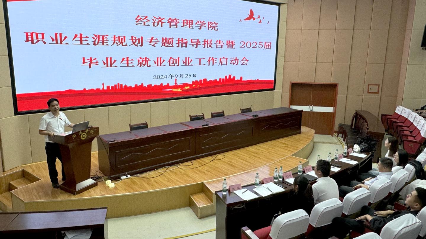 為引導2025屆畢業生正確認識就業形勢,推動畢業生實現高質量就業,9月25日下午,經濟管理學院舉辦職業生涯規劃專題指導報告暨2025屆畢業生就業創業工作啟動會。石羊集團副總裁、長安花糧油股份有限公司董事劉恒,學院黨委副書記賈長安,長安花糧油股份有限公司相關人員以及經管學院畢業班輔導員、全體2025屆畢業生參加會議。動員會由賈長安主持。