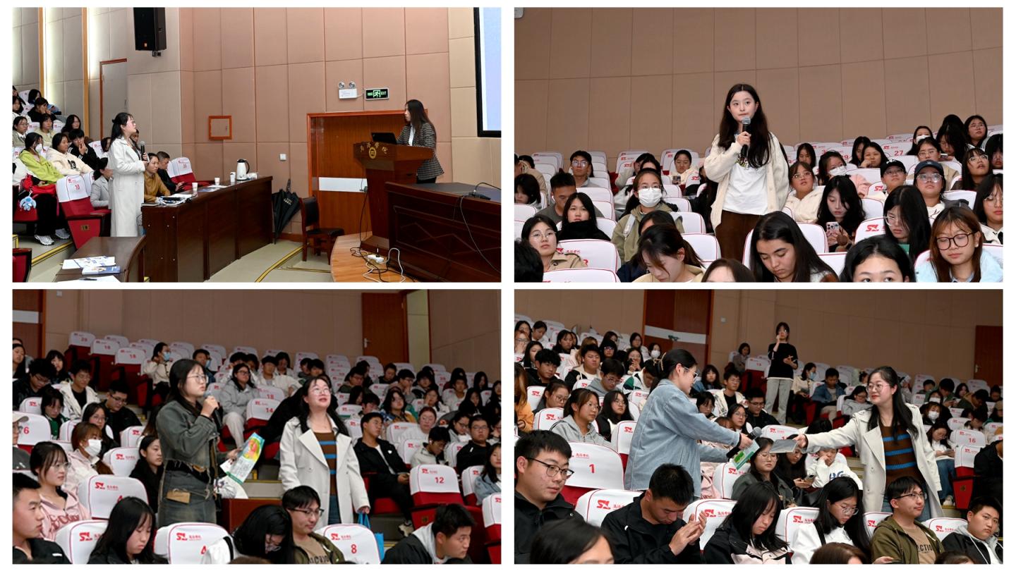 在有獎競答環節,張曉榮就講座內容進行了互動提問,在場師生踴躍參與,現場搶答氛圍濃厚。