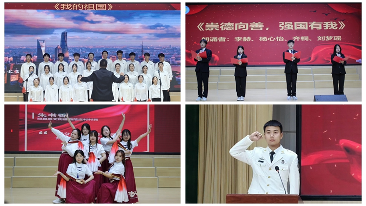 在“誦一段詩詞”環節,學院齊桐等人獻上詩朗誦《崇德向善,強國有我》,王向煜帶來演講《立德樹人守初心,強國有我譜華章》,歌頌道德模范們堅定的理想信念、不懈的奮斗精神。學習完道德模范事跡視頻,經管學子通過舞蹈《萬疆》,用最浪漫的方式表達了對道德模范的崇高敬意。退伍學生代表楊振興帶領全體同學鄭重宣誓,承諾以奮斗的青春擔當強國重任,書寫無愧于時代的華章。
