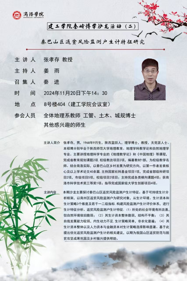 在主題報告環(huán)節(jié),張孝存教授以《秦巴山區(qū)返貧風(fēng)險監(jiān)測戶生計特征研究》為題,分別從秦巴山區(qū)返貧風(fēng)險監(jiān)測戶在生計環(huán)境、生計資本和生計策略三個維度上的特征進行了深入分析,并根據(jù)相應(yīng)問題提出針對性的優(yōu)化建議。