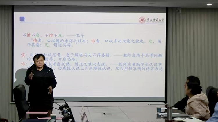 在專題培訓(xùn)環(huán)節(jié),學(xué)院邀請陜西師范大學(xué)教育學(xué)專家嚴文法教授以《優(yōu)質(zhì)課的標(biāo)準(zhǔn)及構(gòu)建策略》為題,為與會教師帶來一場精彩的專題學(xué)術(shù)報告。嚴教授通過生動的教學(xué)應(yīng)用案例進行詳細闡述,讓教師們深刻感受到數(shù)字化教學(xué)帶來的便利和高效。