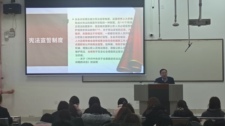 為了深入學習貫徹黨的二十屆三中全會精神,紀念第十一個國家憲法日,馬克思主義學院邀請商洛市律師協會副會長,商洛市“八五”普法講師團講師,陜西天乾律師事務所創始合伙人、主任陳波為學生作了“弘揚憲法精神,培養法治思維”的專題報告。