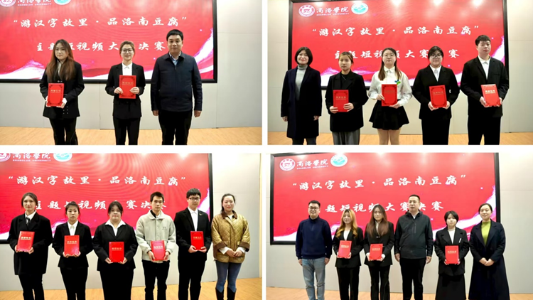 12月1日,商洛直播產業研究院以“游漢字故里 品洛南豆腐”為主題的首屆主題短視頻大賽決賽在圖書館一樓報告廳順利舉行。洛南縣統戰部部長楊新良、洛南縣文化和旅游局副局長馮娜、商洛學院教務處處長王怡、商洛直播產業研究院執行院長房琳、商洛學院人文學院新聞傳播系主任逯祺、商洛市電子商務平臺負責人譚曉奔等6位校內外專家擔任評委。經過激烈角逐,人文學院“對對對隊”和經管學院“豆腐三大隊”兩個團隊獲得大賽一等獎。