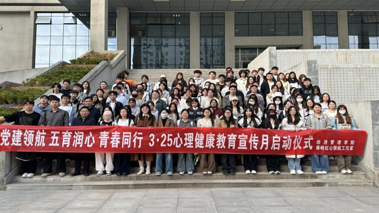 3月25日,經濟管理學院舉行2025年“黨建領航 五育潤心 青春同行”心理健康教育季啟動儀式。學院黨委副書記李川川、全體輔導員及學生代表200余人參加啟動儀式。
