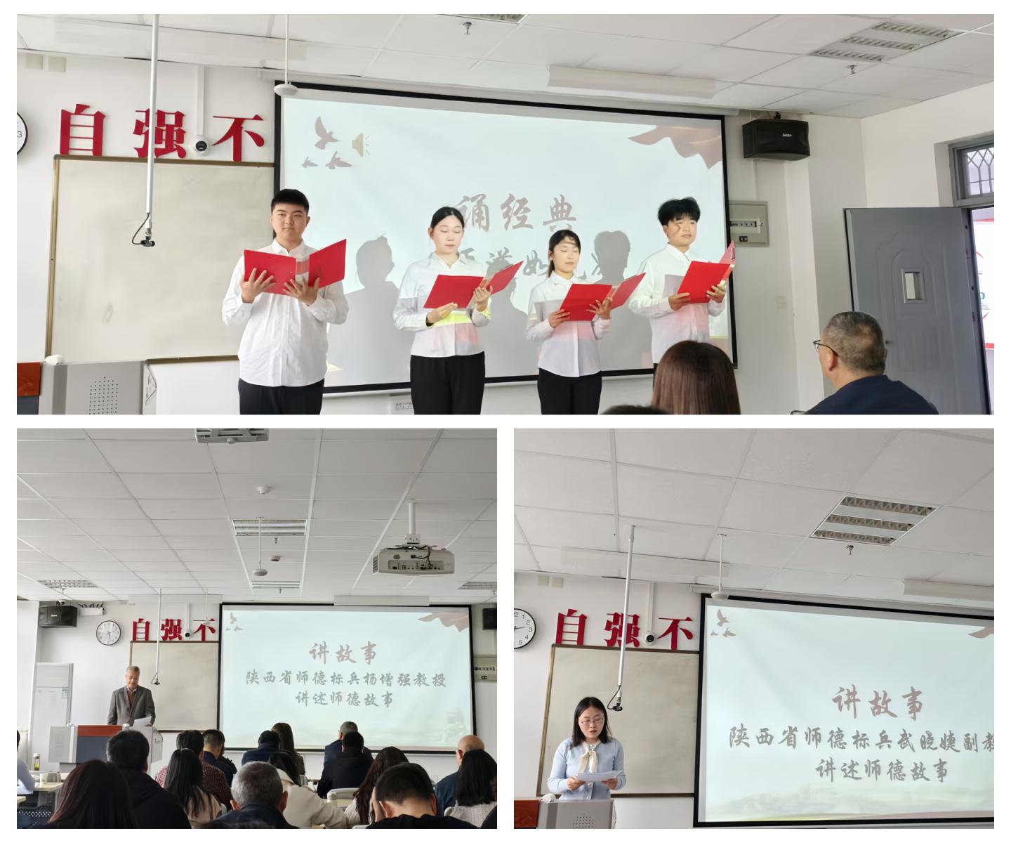活動中,在場師生集體觀看了由中國政法大學(xué)趙慶杰教授主講的《弘揚(yáng)教育家精神,樹立良好師德師風(fēng)》主題報(bào)告,欣賞了我國第一部以思政課教師為題材拍攝的電影《我要當(dāng)教師》主題曲《老師,你好》。陜西省師德標(biāo)兵楊增強(qiáng)教授與武曉捷老師先后圍繞“德潤杏壇 鑄魂育人”主題,以親身經(jīng)歷和所見所聞講述了自己和身邊人的感人故事。