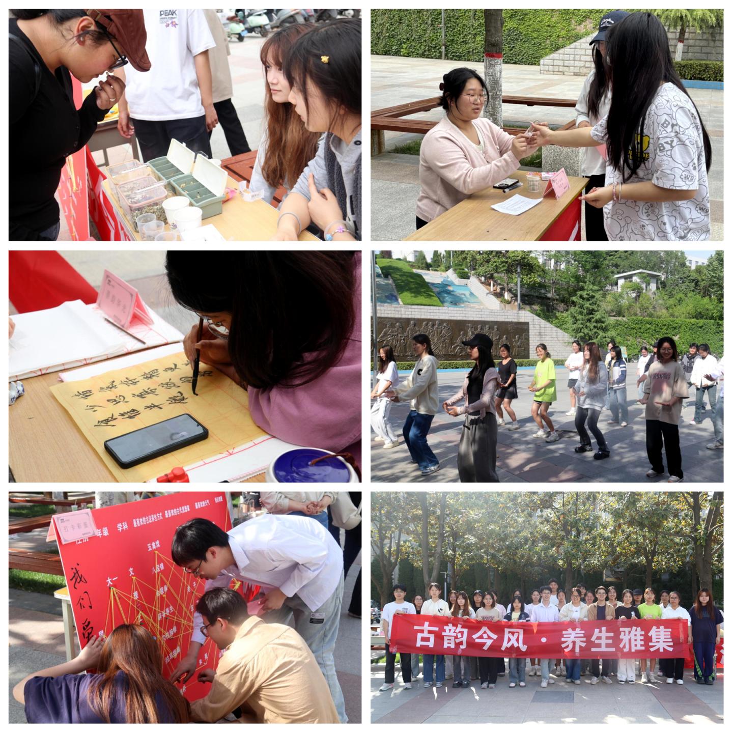 4月29日,健康管理學院學生第二黨支部舉辦“博學潤心 賡續文脈”傳統文化科普游園會。活動以二十四節氣為脈絡,設置“古韻流芳”、“本草識真”、“丹青逸趣”、“養生功法”四個主題,以養生詩詞飛花令、中藥材辨識、書畫展示、八段錦以及五禽戲教學等多元形式,為師生奉上了一場極具傳統智慧的養生盛宴。