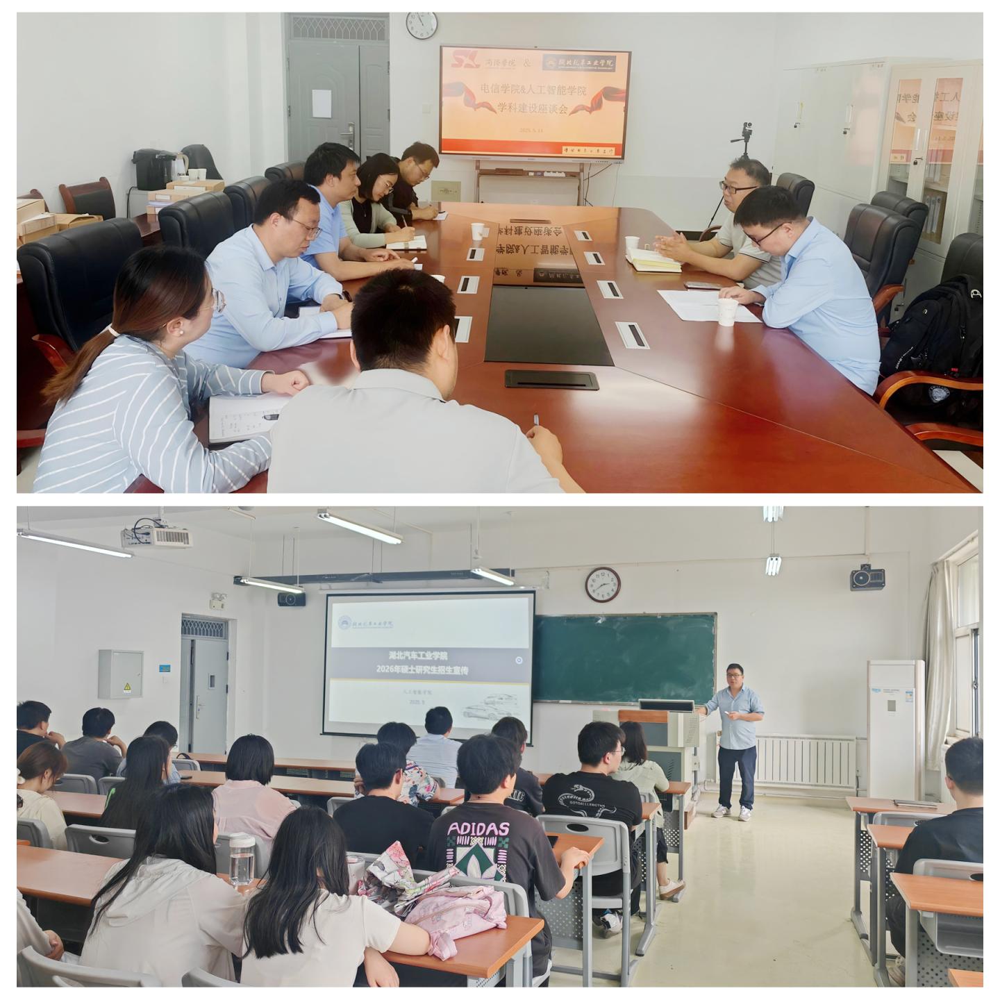 5月14日,湖北汽車工業學院人工智能學院副院長周原一行來訪電信學院,開展學科建設交流及碩士研究生招生宣講活動。電子信息與電氣工程學院黨委書記袁訓鋒、院長陳垚、副院長李亞文及教師代表參與座談。
