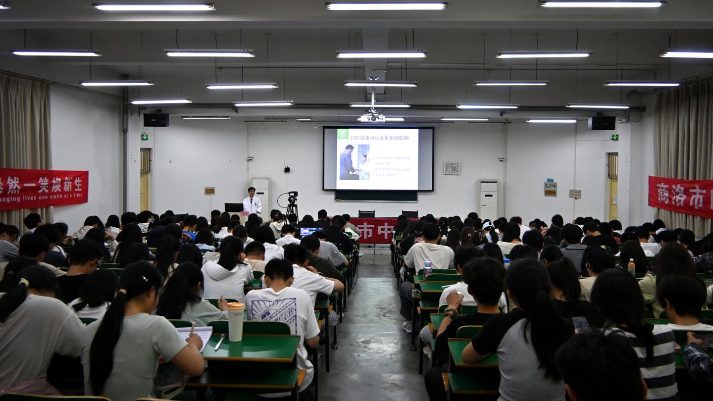 為普及口腔健康知識,增強師生口腔保健意識,5月14日下午,校醫院邀請商洛市中心醫院口腔科主任李阿峰團隊來校,以“健康口腔,微笑同行”為主題通過線下線上方式開展口腔健康專題講座。校醫院工作人員,23級、24級各班學生代表共計400余人參加了講座。校醫院院長任秀梅主持講座。