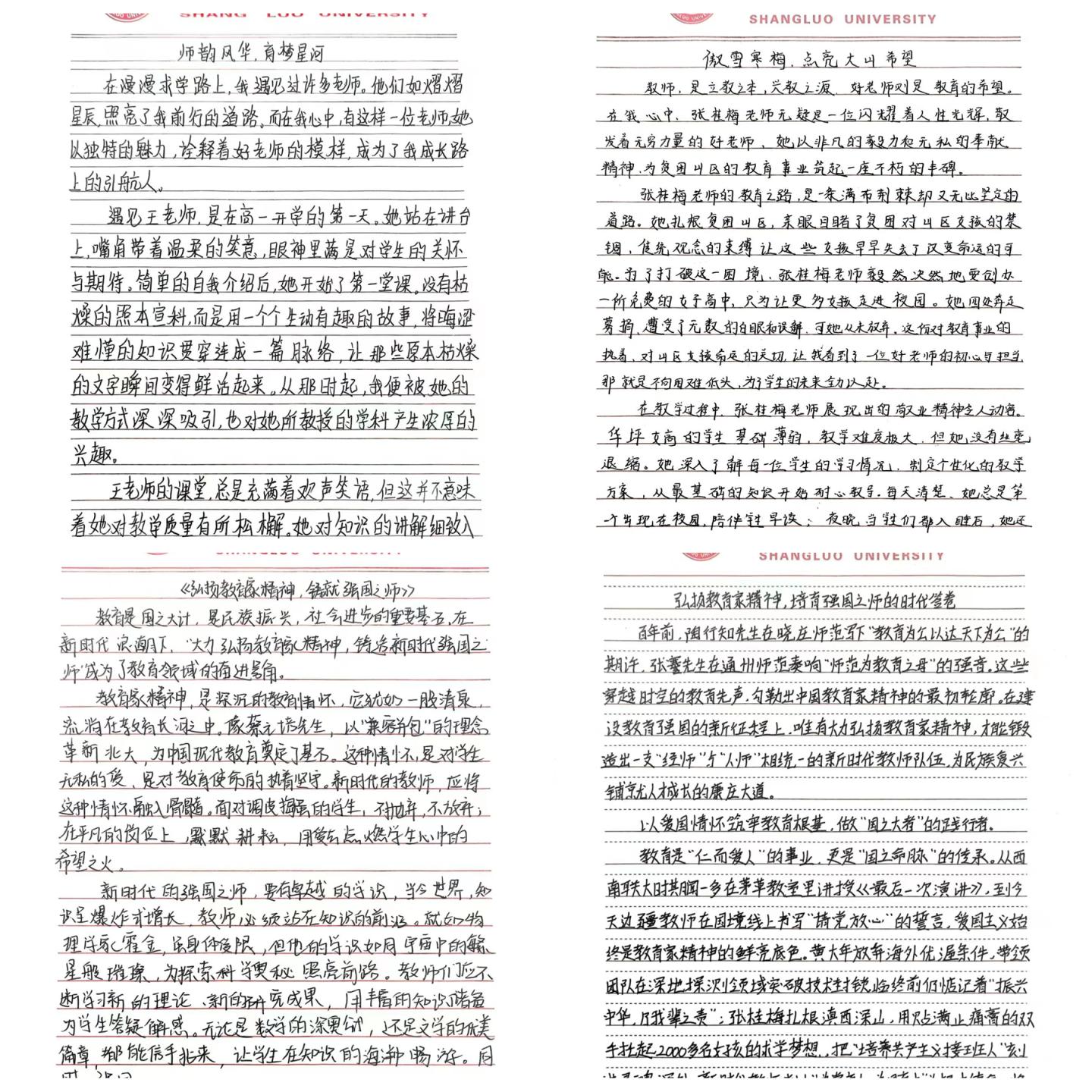 師道與情懷共生,書寫教育華章。為了營造卓越中學(xué)地理教師培養(yǎng)氛圍,弘揚(yáng)教育家精神,4月12日至4月30日,學(xué)院舉辦以“大力弘揚(yáng)教育家精神,鑄造新時代強(qiáng)國之師”為主題的征文比賽,共征集到127篇優(yōu)秀稿件。參賽者們圍繞“我心中的好老師”“教育題材書評影評”“教育家精神感悟”三個賽道,用真摯的文字表達(dá)了對教育事業(yè)的熱愛,對教育家精神的贊美,以及對新時代教師的深刻思考。