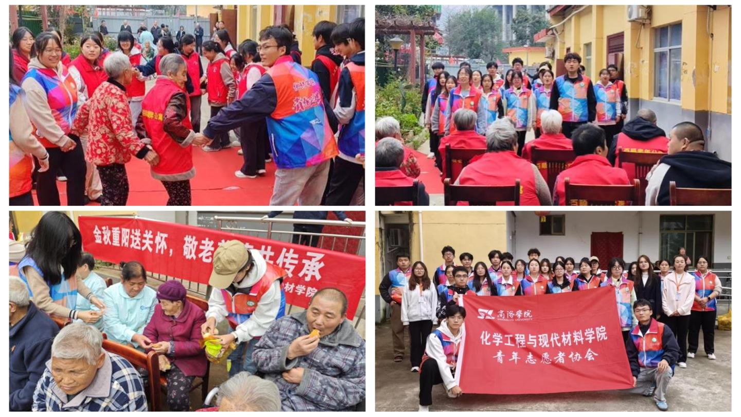 金秋重陽之際,為弘揚中華民族尊老敬老傳統美德,10月29日,化學工程與現代材料學院團總支社會實踐部赴商洛市百順山莊老年公寓,開展“金秋重陽送關懷,敬老美德共傳承”志愿服務活動。志愿者們為老人帶來了舞蹈、朗誦、相聲等精彩節目,活動中還分發了慰問品,并傾聽老人故事,與老人們親切交流,用青春活力傳遞溫暖。