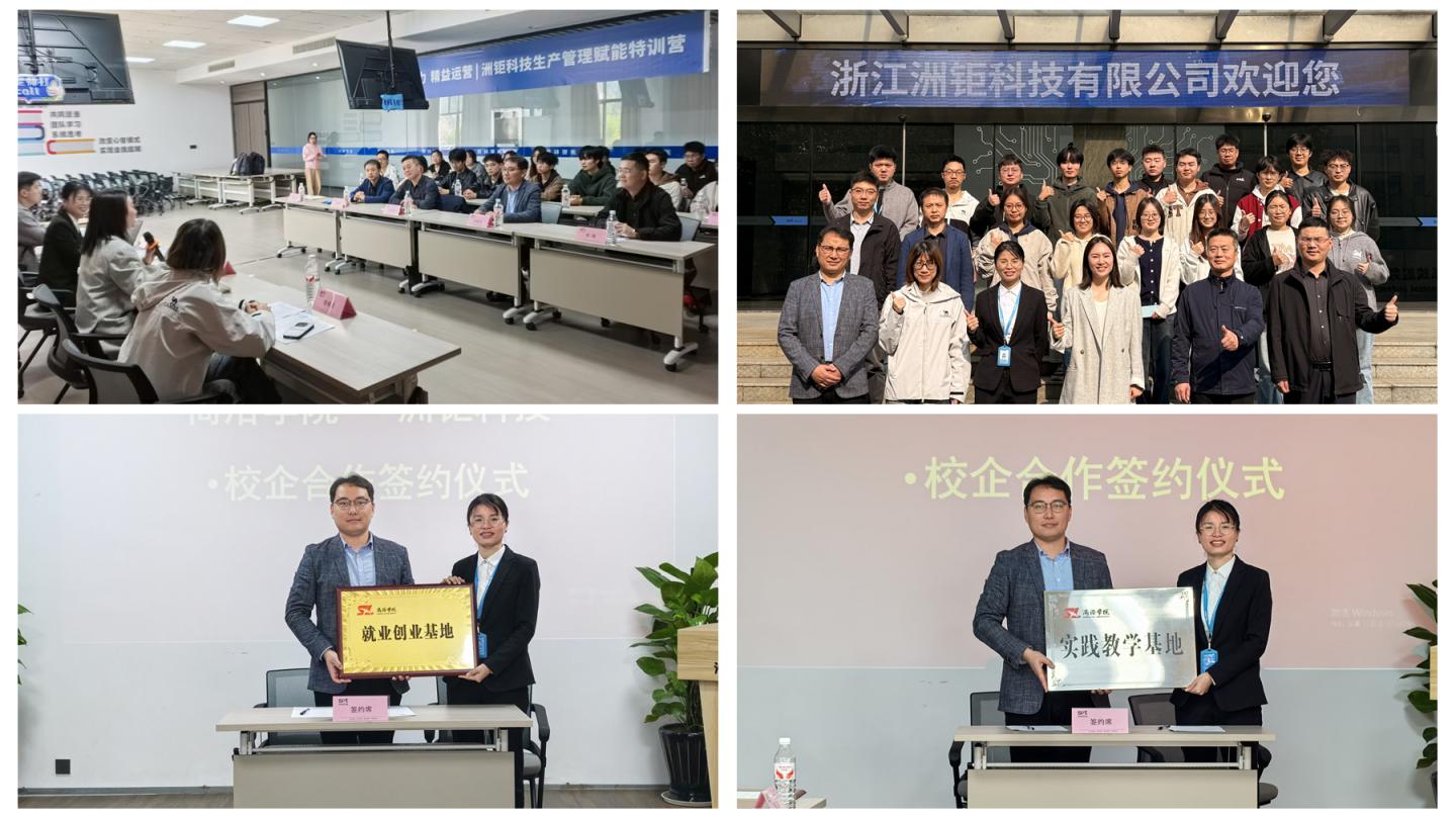 為進一步深化產教融合與校企合作、拓寬畢業生就業渠道和崗位,11月12日至16日 ,電信學院以送畢業生實習為契機,學院黨委副書記·副院長劉征文、電子信息科學系主任何建強、教師雷健及18名2026屆畢業生一行赴浙江湖州開展“訪企拓崗促就業”專項行動,并與浙江洲鉅科技有限公司簽訂校企合作協議。駐長三角(湖州)聯絡處負責人一同參與考察。