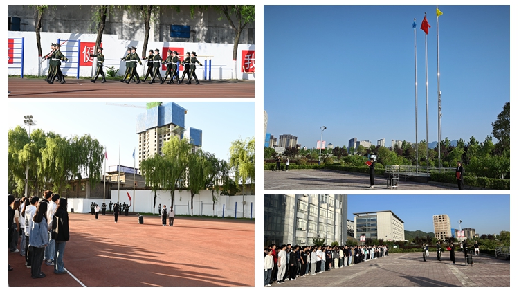 伴隨著激昂的《義勇軍進行曲》,在國旗護衛隊成員的護送下,鮮艷的五星紅旗在兩個校區同時冉冉升起。全體師生莊嚴肅立,面向國旗行注目禮,表達對祖國的無限熱愛和對黨的絕對忠誠。