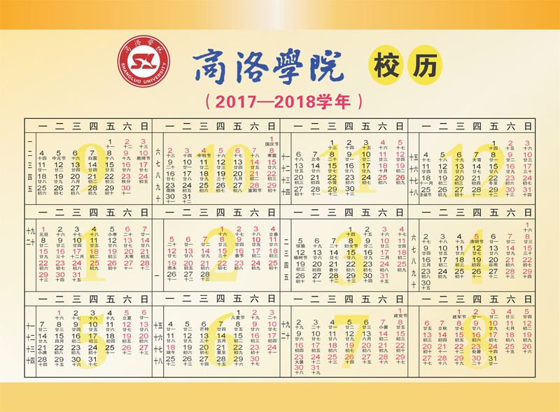 商洛學院校歷(2017—2018學年)