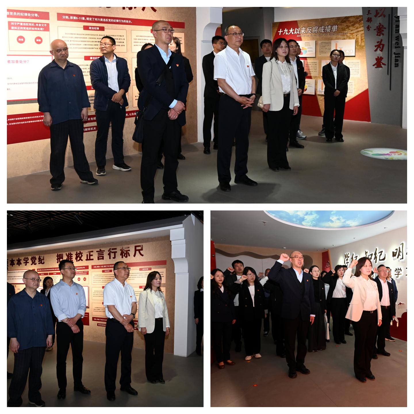 在“商洛市廉政教育基地”,全體黨員干部認(rèn)真聆聽工作人員的講解,參觀了“旗幟引領(lǐng)、自我革命、以案為鑒、警鐘長(zhǎng)鳴、建設(shè)清廉商洛”五個(gè)主題展室,重溫了入黨誓詞。通過圖文資料、實(shí)物展示、視頻影像等多種形式,全體黨員干部接受了一次主題鮮明、內(nèi)容豐富的廉政紀(jì)律文化警示教育,受到了深刻的思想淬煉和精神洗禮,在場(chǎng)的同志們深刻領(lǐng)悟到“廉貪一念間,榮辱兩重天”的慘痛教訓(xùn),進(jìn)一步加強(qiáng)了全體黨員的黨性修養(yǎng)和紀(jì)律意識(shí),引導(dǎo)全體黨員自省自律。