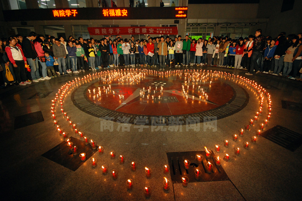 4月22日晚。我校學生自發組織祈福活動,為“4·20”雅安地震中遇難的同胞默哀,為災區人民祈福