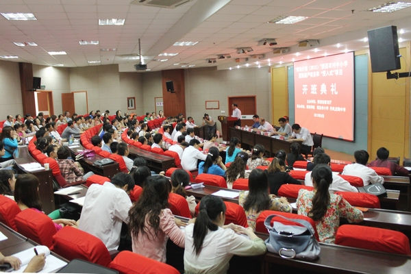 9月13日上午,我校在圖書館一樓會議廳舉辦“國培計劃(2013)”—陜西省農村中小學置換脫產項目和“浸入式”項目開班典禮。陜西省教育廳師資與師范教育處副處長朱曉冬,陜西省“國培計劃”項目執行辦公室項目部主任蘇理,商洛市教育局副局長周春榮出席開班典禮。校紀委書記、“國培計劃”項目工作領導小組組長王思懷出席開班典禮并致辭。開班典禮由我校成人教育學院院長、“國培計劃”項目工作領導小組副組長任少儉主持