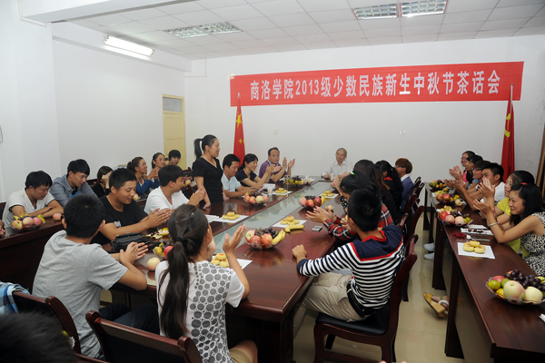 9月18日晚,我校舉辦2013級少數民族新生中秋節茶話會。校黨委副書記左曉民與2013級少數民族學生代表同聚一堂,共話中秋佳節。學生處處長石啟英主持座談。學生處相關負責人、輔導員代表和高年級學生代表參加了座談會
