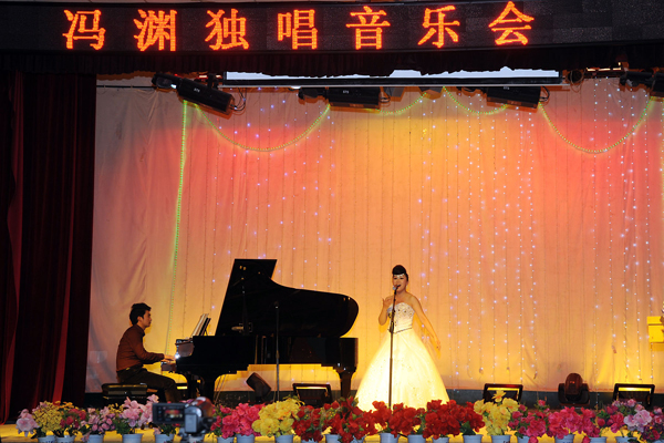 11月11日晚,由黨委宣傳部和藝術(shù)系聯(lián)合舉辦的馮淵獨唱音樂會在學(xué)校大學(xué)生活動中心隆重舉辦。藝術(shù)系青年教師馮淵為觀眾們激情演唱了《虞美人》《枉凝眉》《秦嶺里最美的地方是商洛》等16首經(jīng)典名曲。校黨委書記張景書、紀委書記王思懷、副院長魏書堂,商洛市委組織部副部長葉朝陽,市文聯(lián)黨組書記王良,市廣電局副局長、商洛電視臺臺長鞏文超,市音樂家協(xié)會主席林宏彥,市劇團團長李小彬等商洛文化藝術(shù)界人士、音樂愛好者,我校藝術(shù)系師生、“國培”學(xué)員代表共400余人共同聆聽了這場音樂盛宴