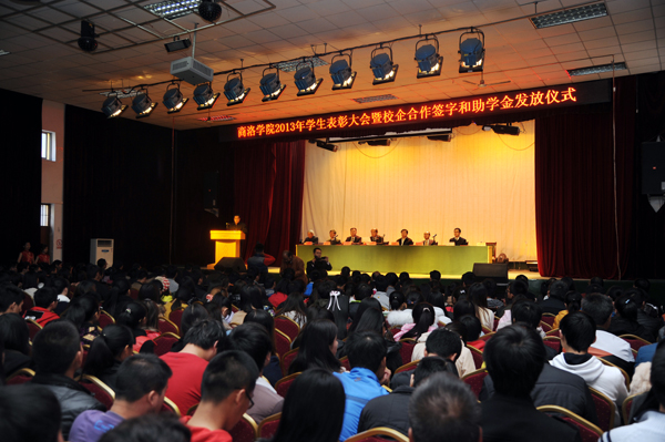 11月20日,我校隆重舉行2013年學生表彰大會暨校企合作簽字和助學金發放儀式。校黨委書記張景書、院長劉建林、黨委副書記左曉民、副院長魏書堂,商洛供電局黨委書記陳飛、紀委書記楊軍,商洛市郵政局局長王偉、調研員王林出席大會。各系各相關部門負責人、獲獎學生及學生代表參加大會。會議由左曉民主持