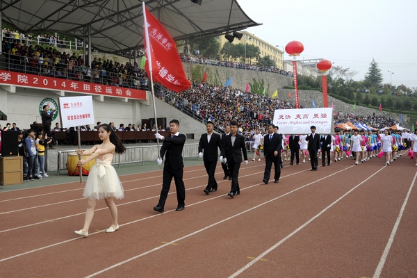 彩旗飄揚,鑼鼓鏗鏘,4月24日上午,我校2014年田徑運動會隆重開幕。商洛市政府副市長劉榮賢,校領導張景書、劉建林、左曉民、魏書堂,商洛供電局局長李琦、中國聯通商洛分公司總經理古濤、中國電信商洛分公司副總經理胡萬社、中國移動商洛分公司副總經理楊林濤出席了開幕式。校內各單位負責人,各學院及教職工組成的10支代表隊參加了開幕式。開幕式由副校長魏書堂主持,校黨委書記左曉民致開幕詞