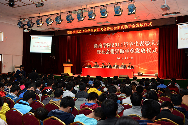 11月12日,我校隆重舉辦2014年學生表彰大會暨社會捐資助學金發放儀式。校黨委書記張景書、校長劉建林、黨委副書記左曉民,商洛供電局局長、黨委副書記李琦,中國郵政商洛分公司總經理王偉、中國聯通商洛分公司總經理古濤、中國電信商洛分公司總經理郝紅彥出席大會。中國電信商洛分公司與我校在大會上簽署了《校企合作協議書》。大會對2013至2014學年度三好學生、優秀學生干部和先進班集體進行了表彰,向受資助學生發放了社會捐資助學金。大會由左曉民主持