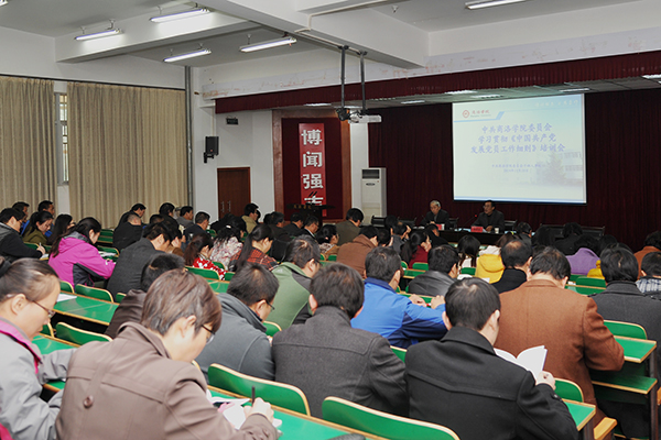 11月20日下午,學校召開學習貫徹《中國共產黨發展黨員工作細則》培訓會,對各黨總支和直屬黨支部委員、各黨總支下設黨支部書記和組織委員100余人進行了專題培訓。校黨委副書記左曉民出席會議并講話。培訓會由校黨委委員、干部人事處處長高榮發主持